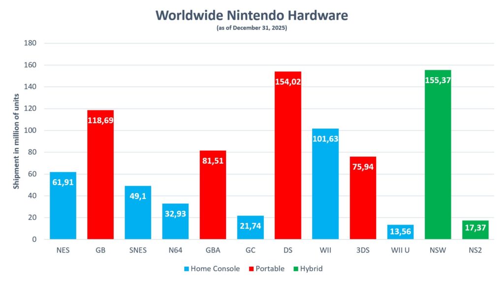 Tambien, el Nintendo Switch 1 ha vendido 155M de consolas convirtiendose en la consola de Nintendo más vendida en la historia superando al Nintendo DS.